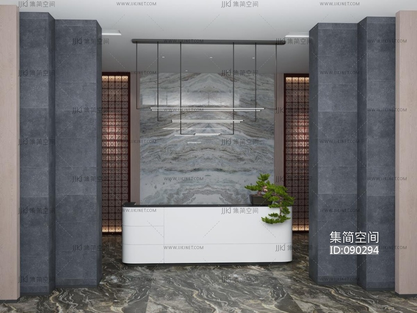 新中式酒店会所接待大厅大堂 3d模型下载 [模型ID:90294]