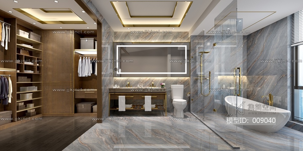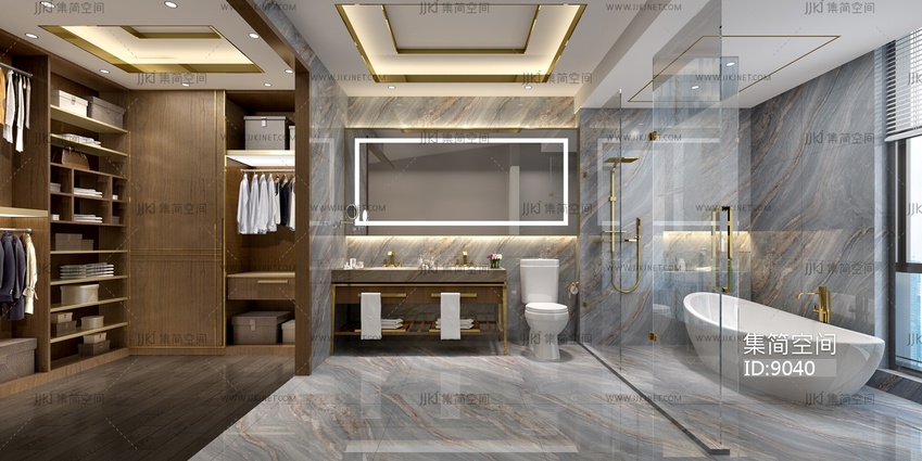 71-1030现代卫生间衣帽间 3d模型下载 [模型ID:9040]