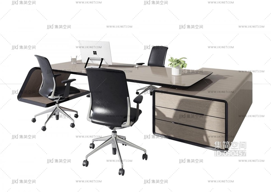 现代简约班台桌办公桌椅组合 3d模型下载 [模型ID:90457]