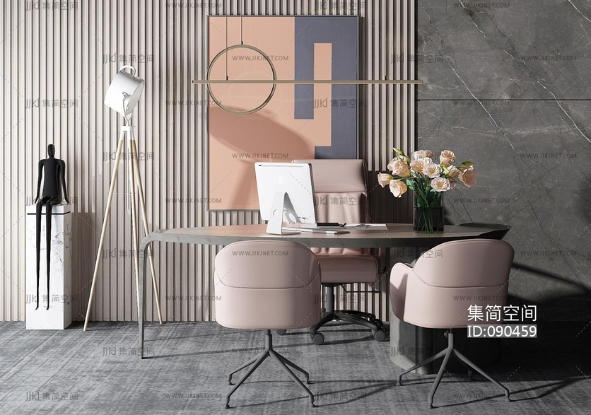 现代办公桌椅,班台桌 3d模型下载 [模型ID:90459]