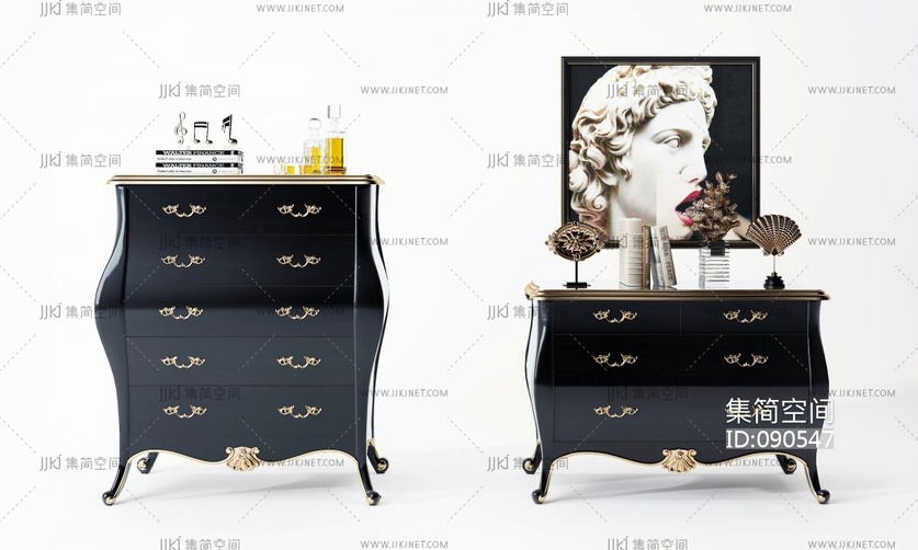 欧式古典雕花边柜 3d模型下载 [模型ID:90547]