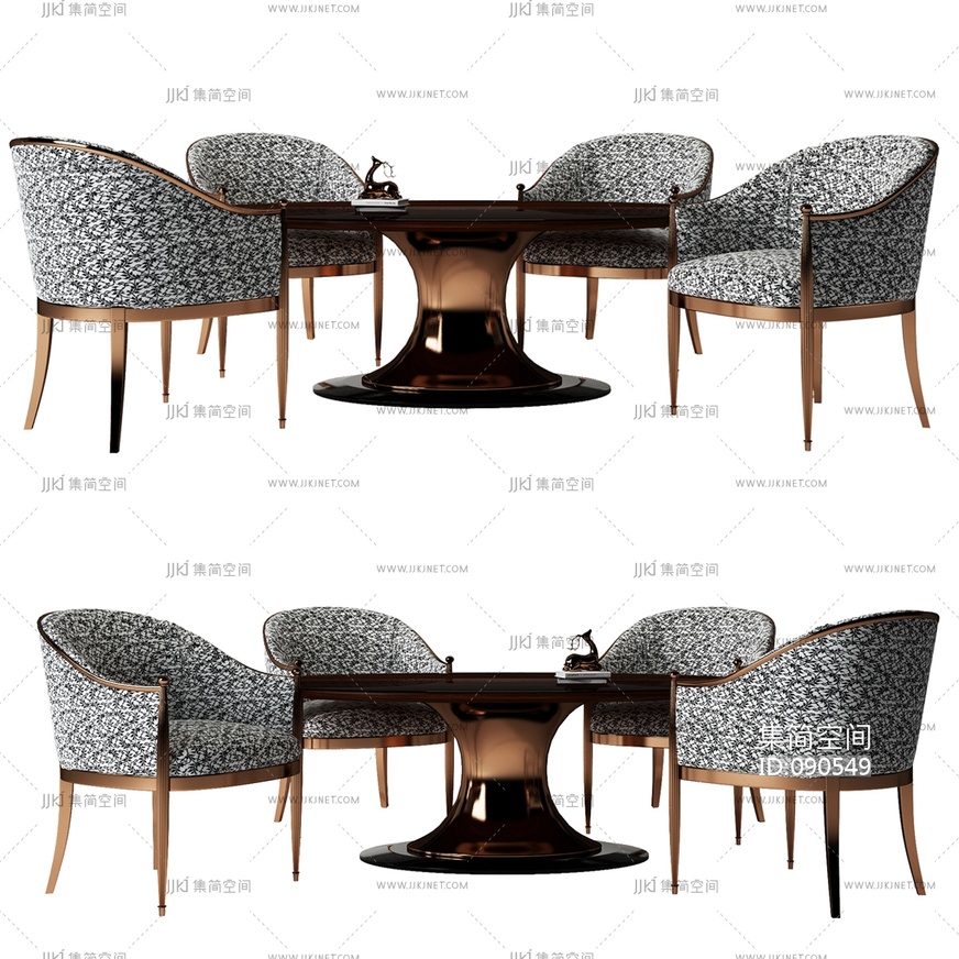 新古典金属圆形餐桌椅 3d模型下载 [模型ID:90549]