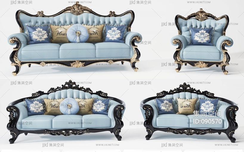 欧式古典雕花沙发 3d模型下载 [模型ID:90570]