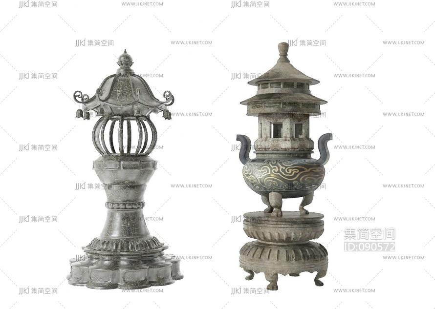 中式古典铜器香炉 3d模型下载 [模型ID:90572]