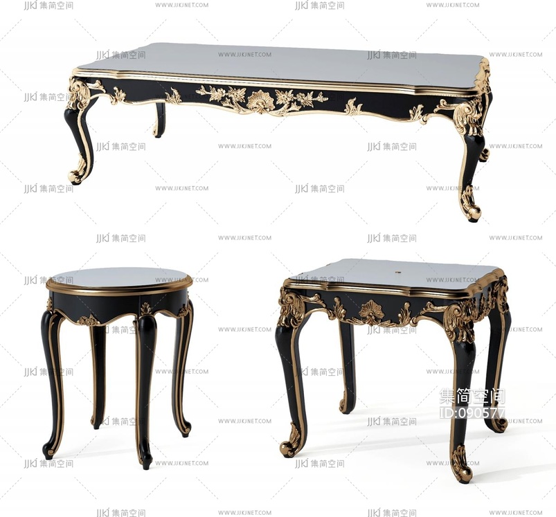 法式雕花茶几边几组合 3d模型下载 [模型ID:90577]