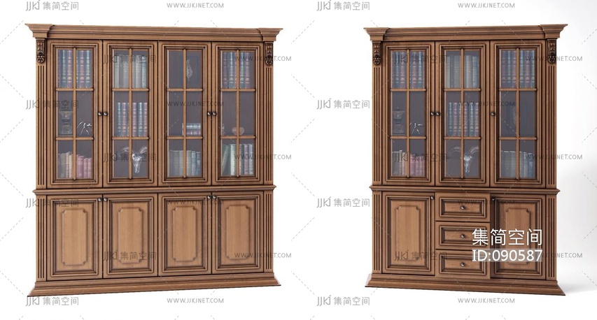 欧式实木书柜 3d模型下载 [模型ID:90587]