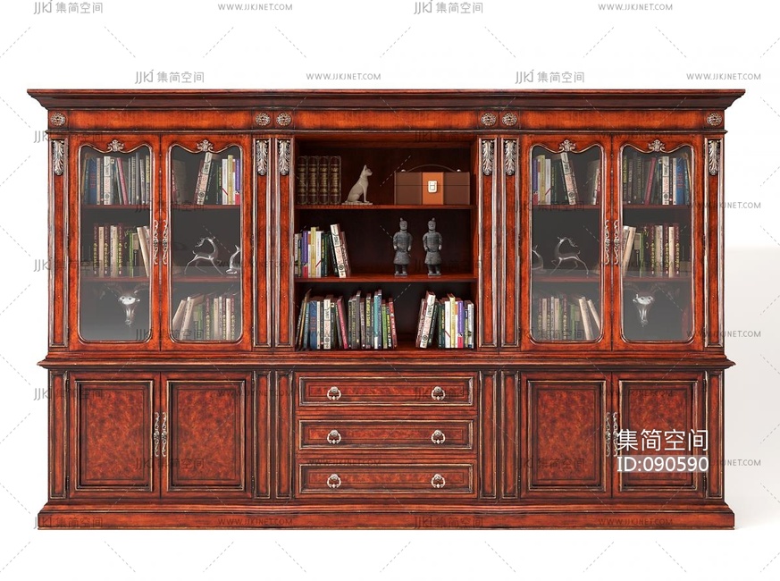 美式书柜 3d模型下载 [模型ID:90590]