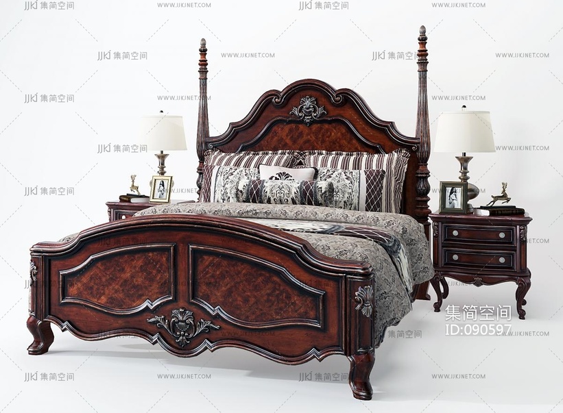 欧式古典床组合 双人床台灯3D模型3d模型下载