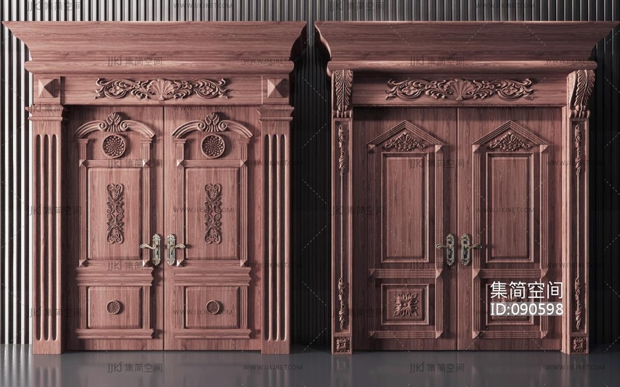 欧式古典雕花双开大门 3d模型下载 [模型ID:90598]