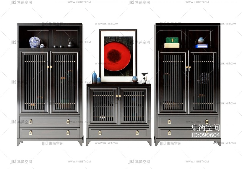 -新中式书柜 3d模型下载