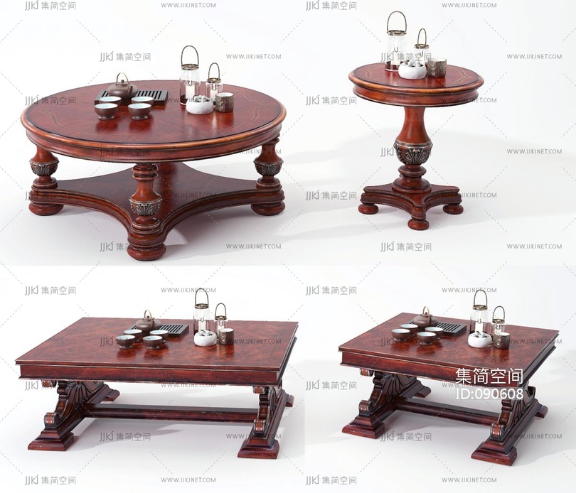 美式茶几组合 3d模型下载 [模型ID:90608]