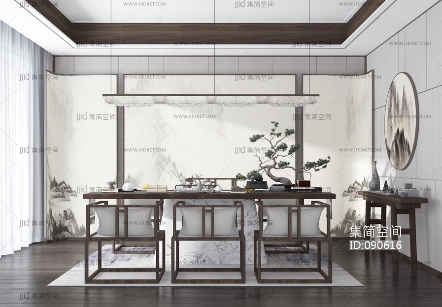 新中式茶室,茶桌椅 3d模型下载 [模型ID:90616]