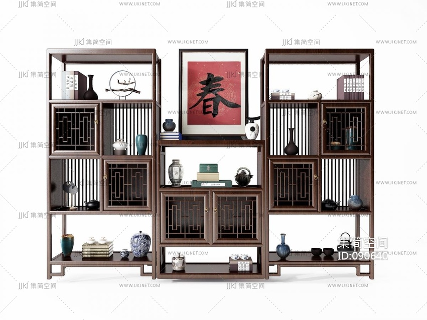 新中式实木博古架 3d模型下载 [模型ID:90640]