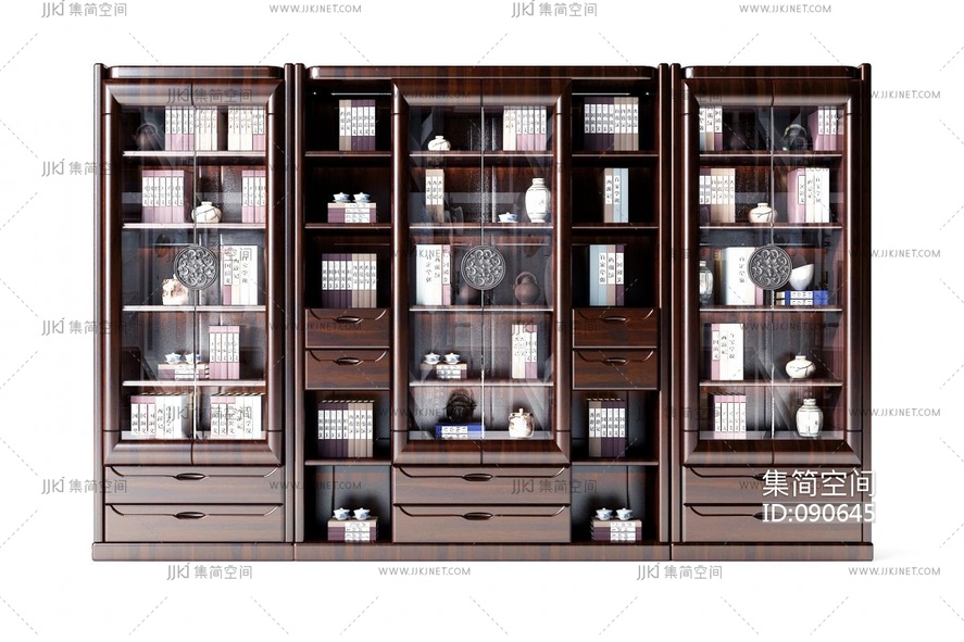 新中式实木书柜 3d模型下载 [模型ID:90645]