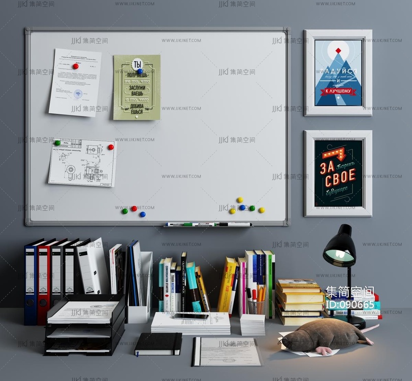 现代写字板,文件夹,书,办公用品组合 3d模型下载 [模型ID:90665]