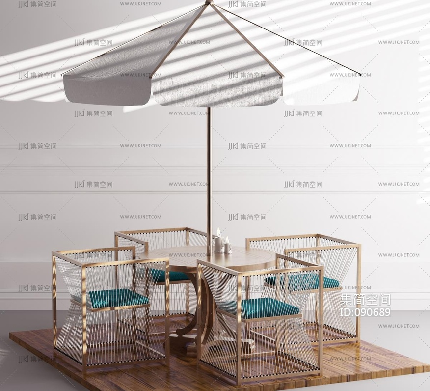 现代户外休闲桌椅,遮阳伞 3d模型下载 [模型ID:90689]