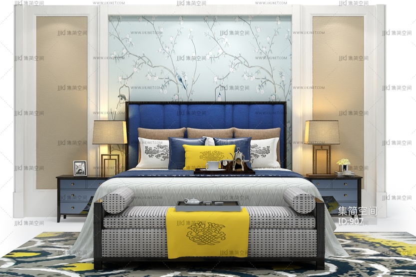 26-现代双人床_主卧床_布艺床3D模型93d模型下载