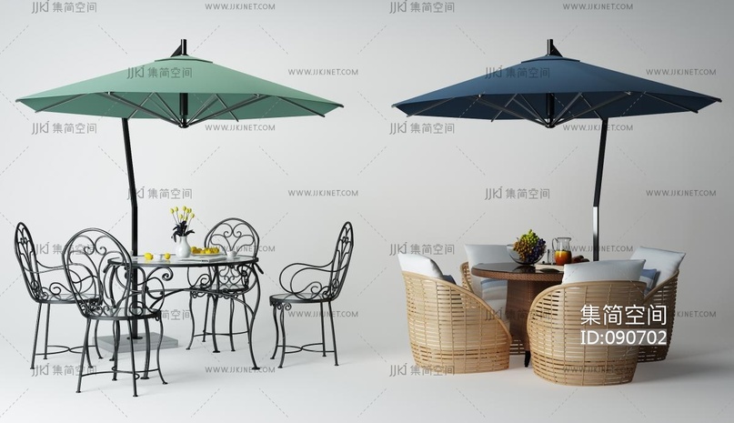 现代户外桌椅_休闲椅_洽谈桌椅_户外椅_户外餐桌_遮阳伞3D模型3d模型下载