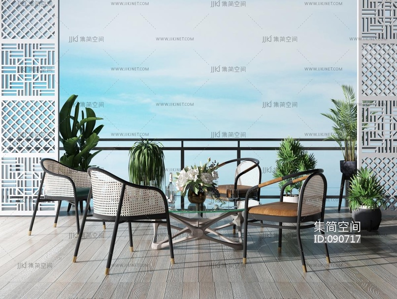现代户外藤编休闲桌椅 3d模型下载 [模型ID:90717]