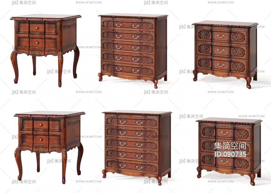 美式实木床头柜装饰柜组合 3d模型下载 [模型ID:90735]