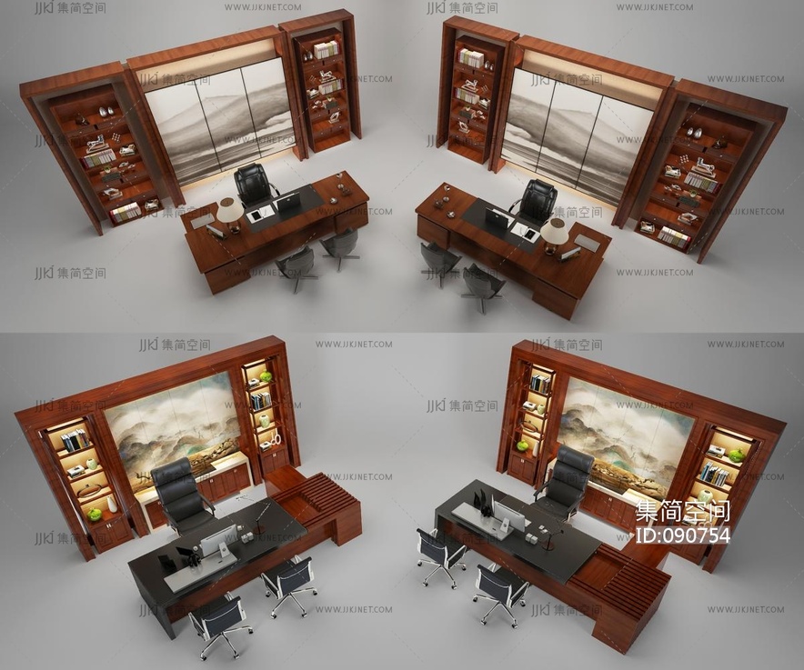新中式办公桌椅 3d模型下载 [模型ID:90754]
