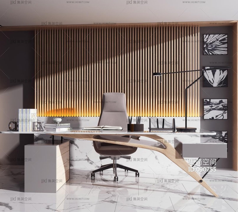 现代办公桌椅 3d模型下载 [模型ID:90755]