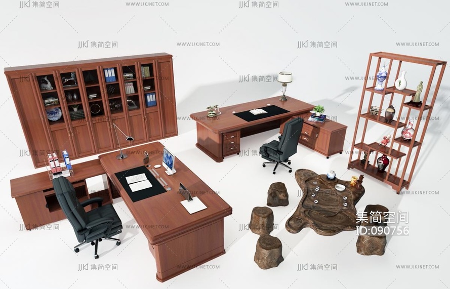 新中式班台办公桌 3d模型下载 [模型ID:90756]