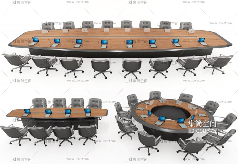 现代圆形视频会议桌椅 3d模型下载 [模型ID:90775]