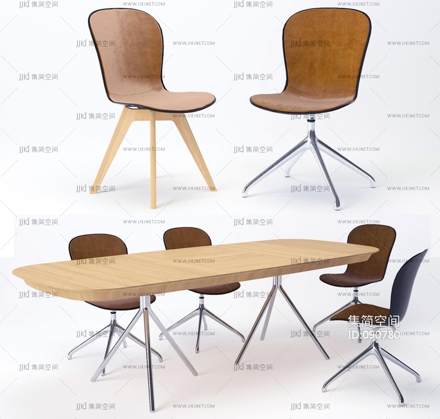 现代实木小会议桌办公椅 3d模型下载 [模型ID:90780]