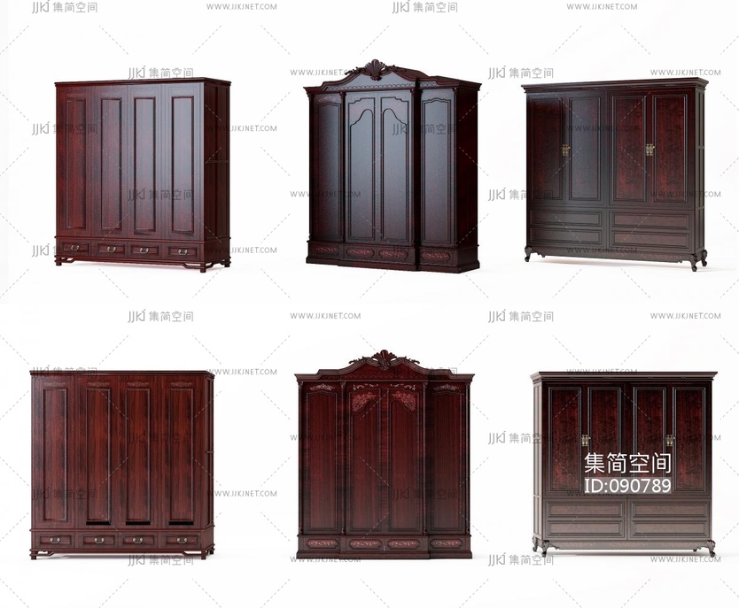 中式古典实木红木衣柜 3d模型下载 [模型ID:90789]