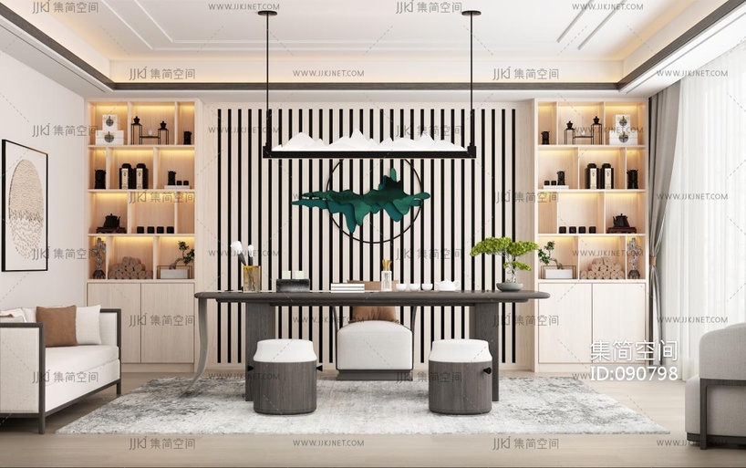 新中式书房 3d模型下载 [模型ID:90798]