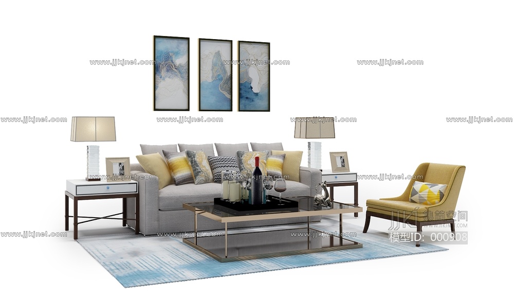 0011现代沙发组合 3d模型下载 [模型ID:908]