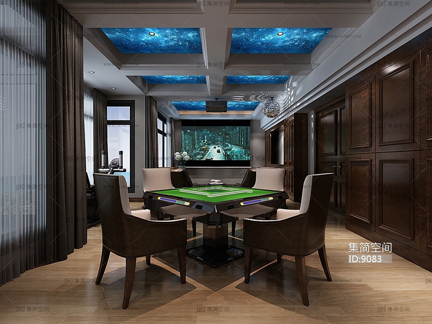 25-1104中式棋牌室麻将桌 3d模型下载 [模型ID:9083]