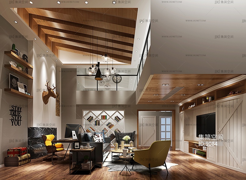 26-1104田园客厅鹿头皮箱 3d模型下载 [模型ID:9084]