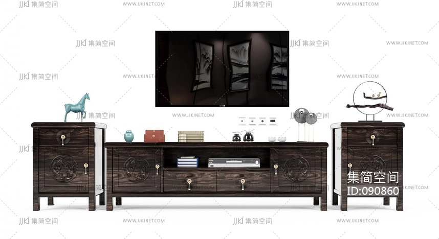 中式雕花电视柜 3d模型下载 [模型ID:90860]