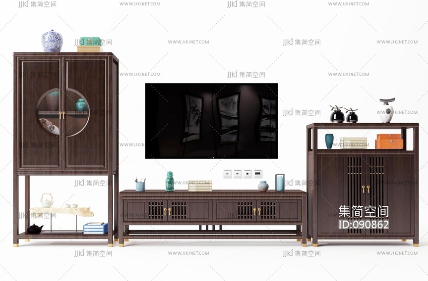 中式实木电视柜边柜 3d模型下载 [模型ID:90862]