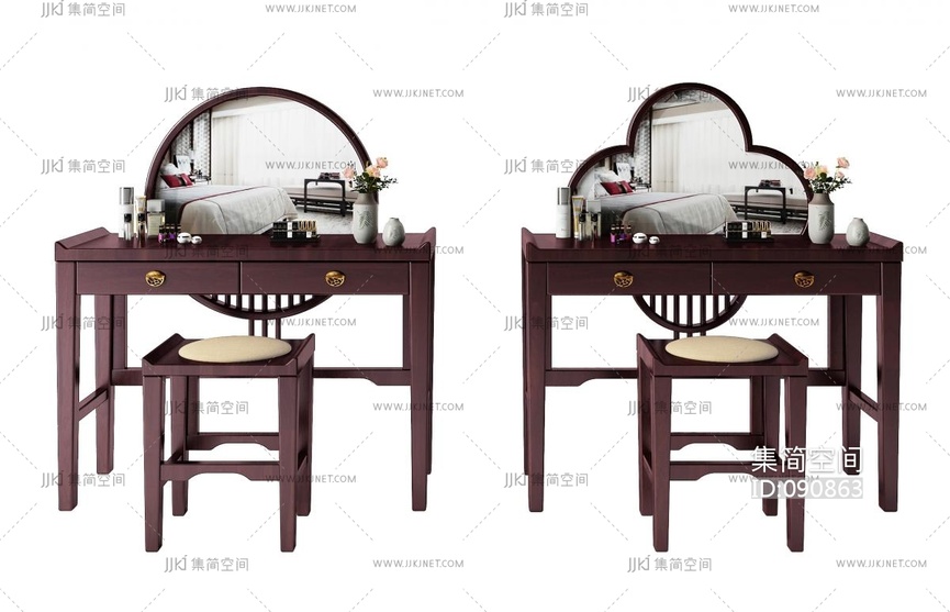 新中式实木梳妆台组合 3d模型下载 [模型ID:90863]