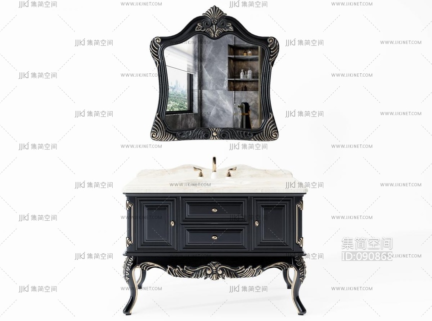 欧式古典雕花浴室柜, 3d模型下载 [模型ID:90868]