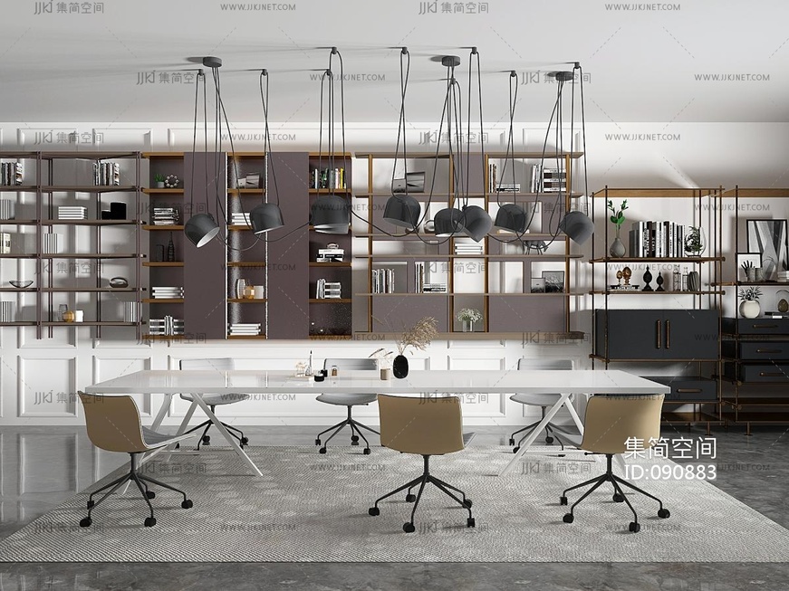 现代会议桌椅书柜组合 3d模型下载 [模型ID:90883]