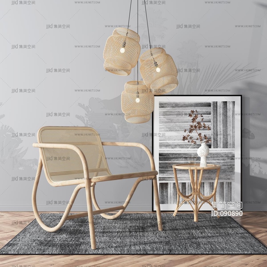 新中式茶桌椅_竹编桌椅组合3d模型下载