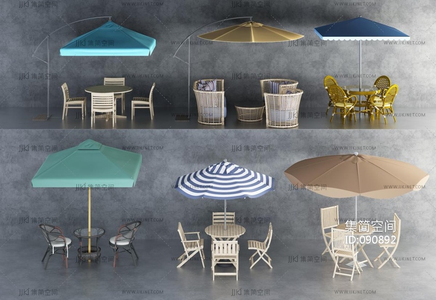 现代户外遮阳伞,藤编休闲椅组合 3d模型下载 [模型ID:90892]