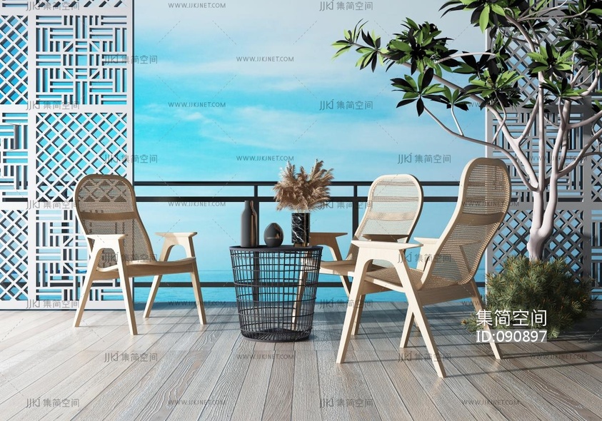 现代户外藤编休闲桌椅, 3d模型下载 [模型ID:90897]