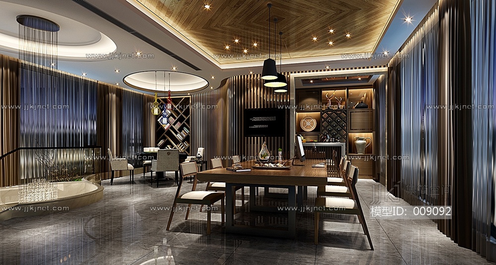34-1104中式书房、棋牌室 3d模型下载 [模型ID:9092]