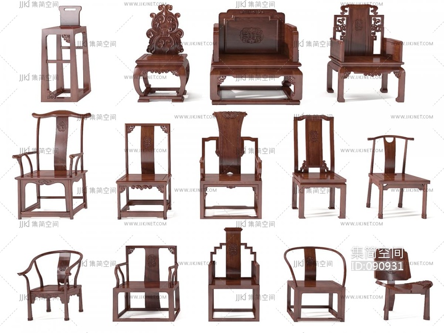 中式古典雕花红木实木椅子组合 3d模型下载 [模型ID:90931]