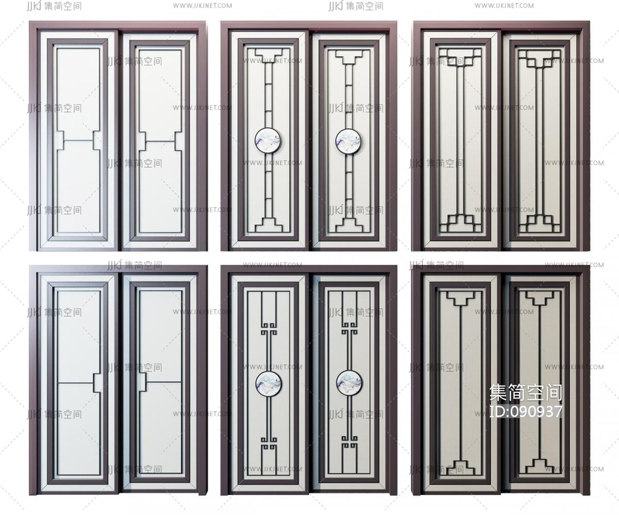 新中式推拉门 3d模型下载 [模型ID:90937]