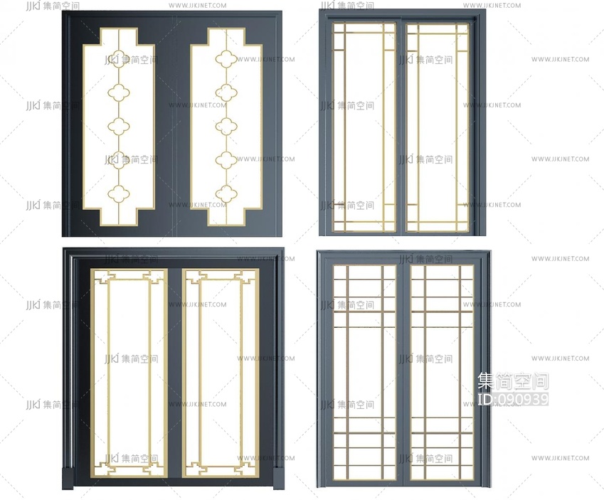 新中式门 双开门3d模型下载