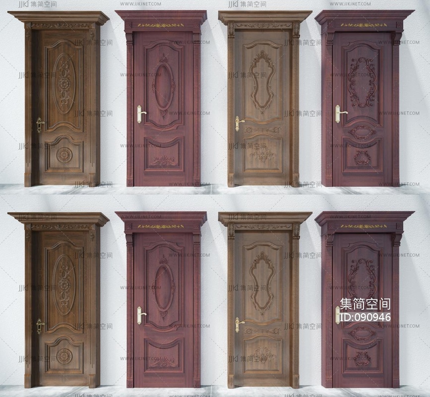 新中式单开门入户门_子母防盗门3D模型3d模型下载