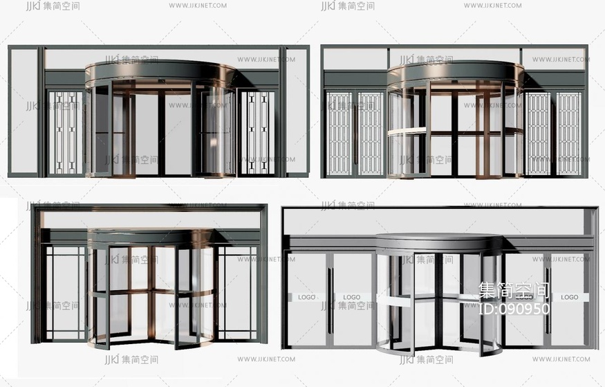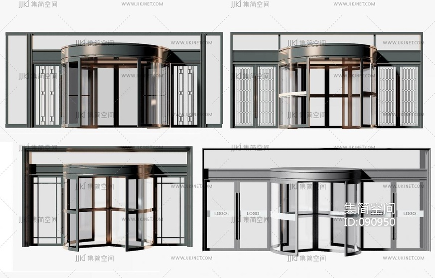 现代玻璃门玻璃双开门3D模型3d模型下载