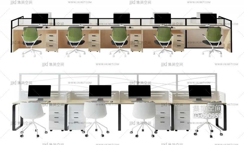 现代办公桌椅工位 3d模型下载 [模型ID:90959]