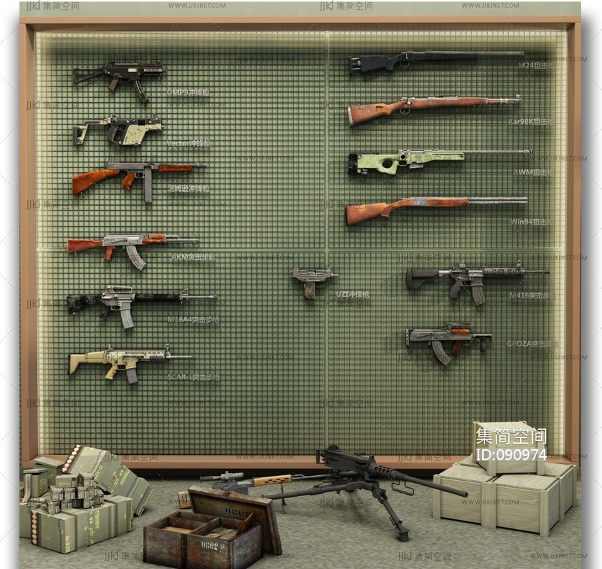 现代枪武器组合 3d模型下载 [模型ID:90974]